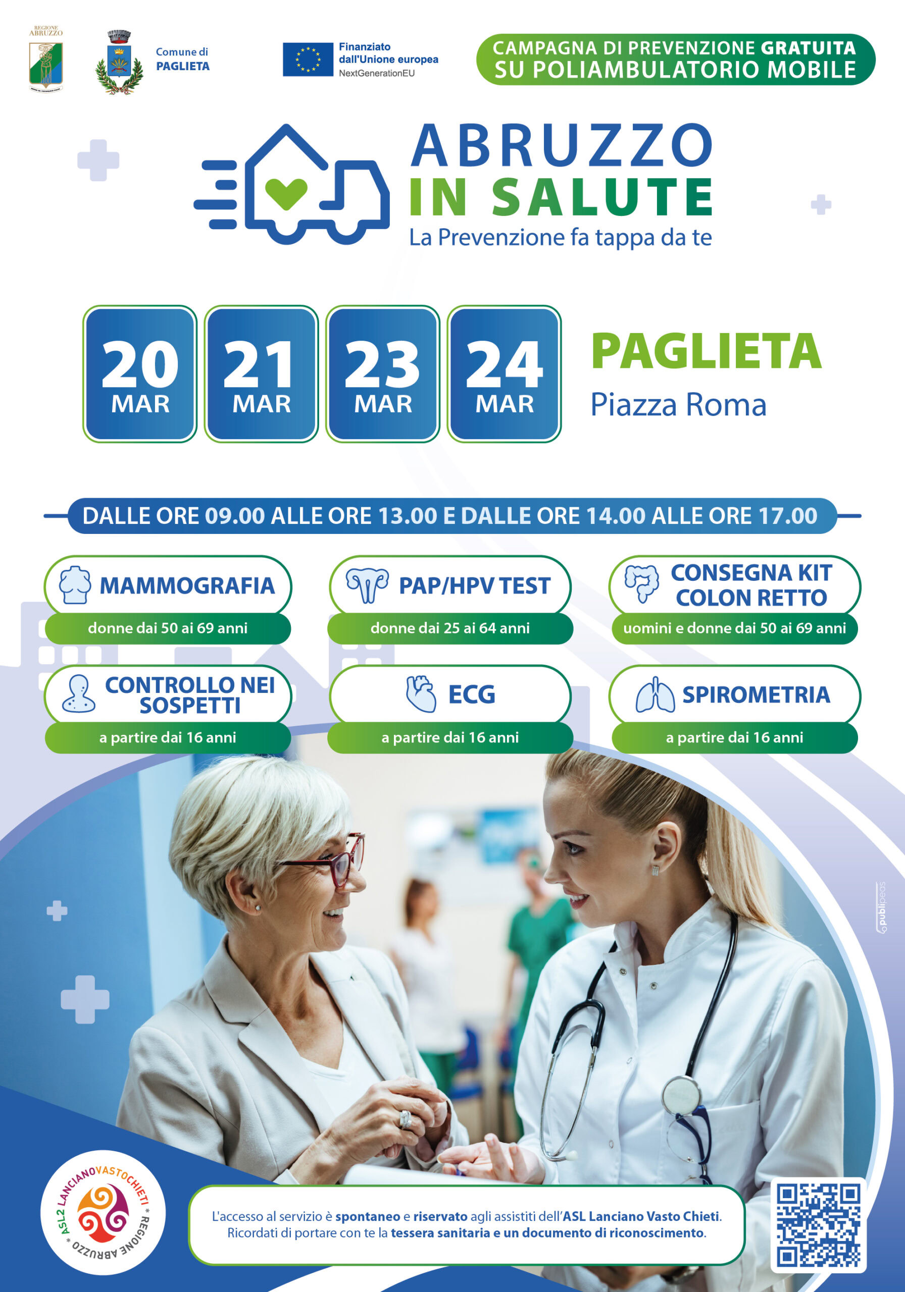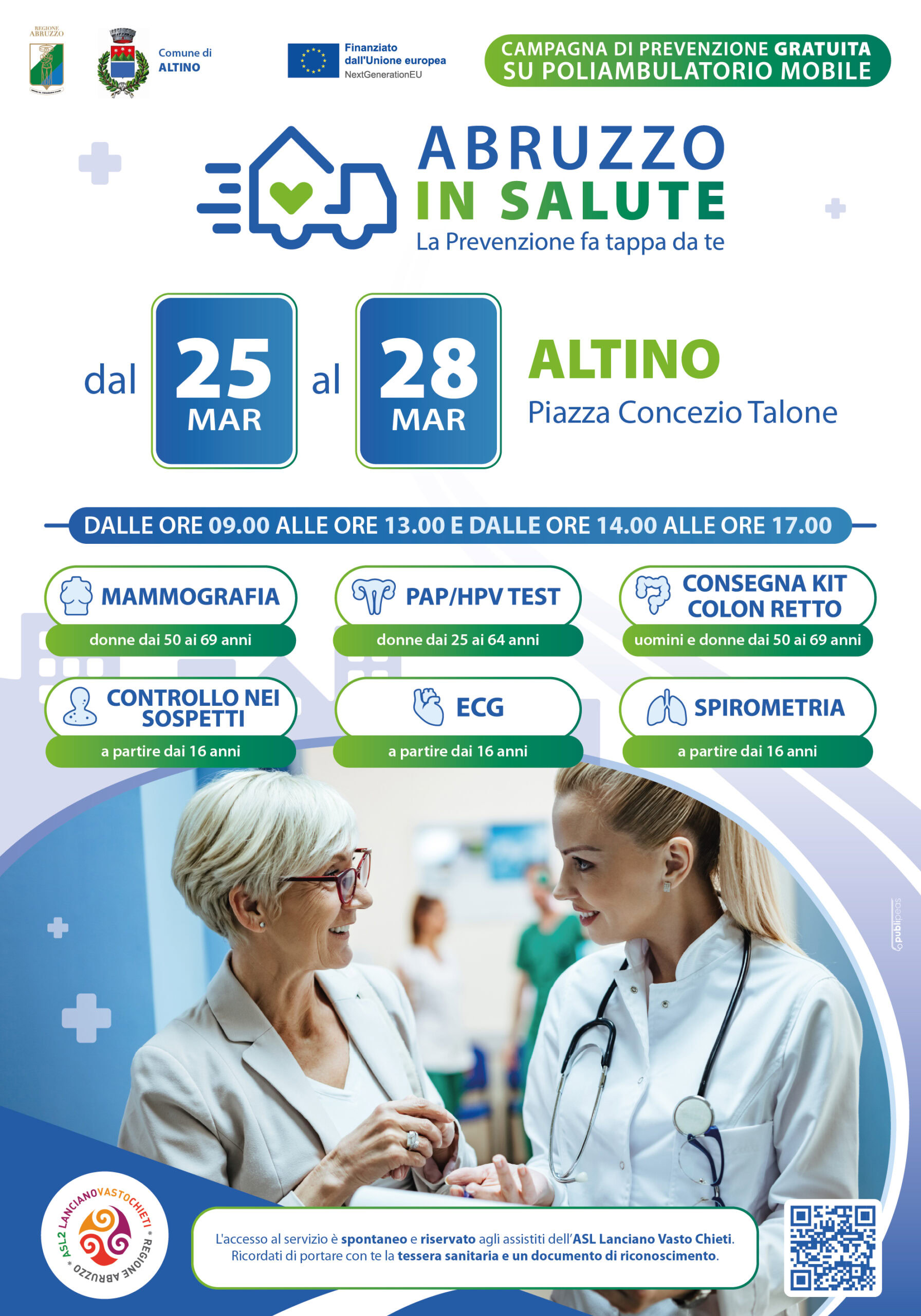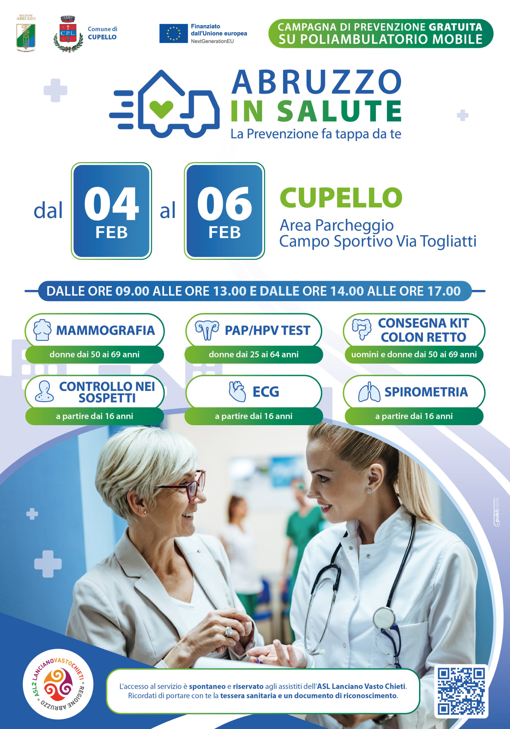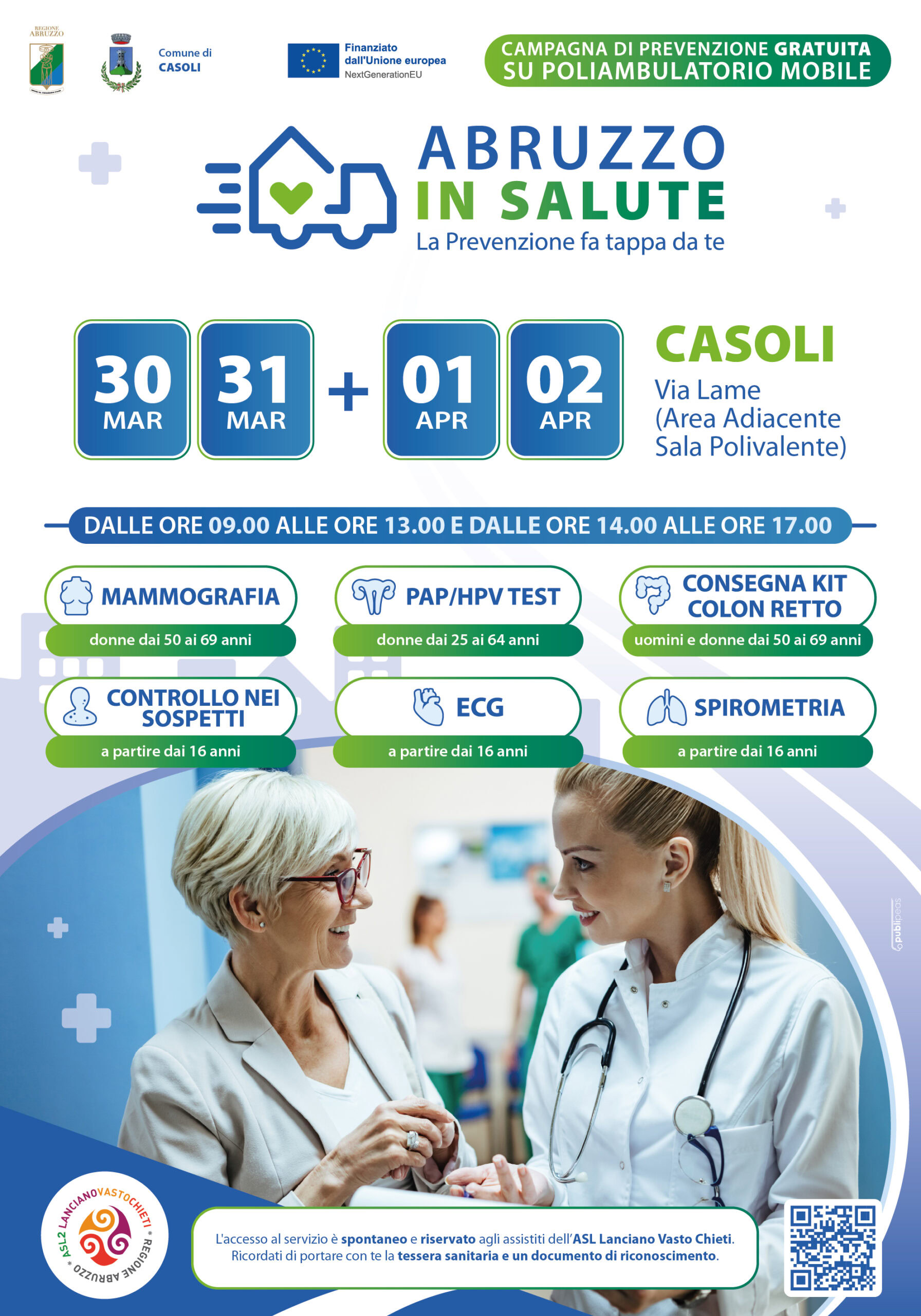 La Casa della Salute Mobile è una unità mobile, con tappe in diversi comuni della provincia di Chieti, che offre screening agli assistiti della Asl Lanciano Vasto Chieti.