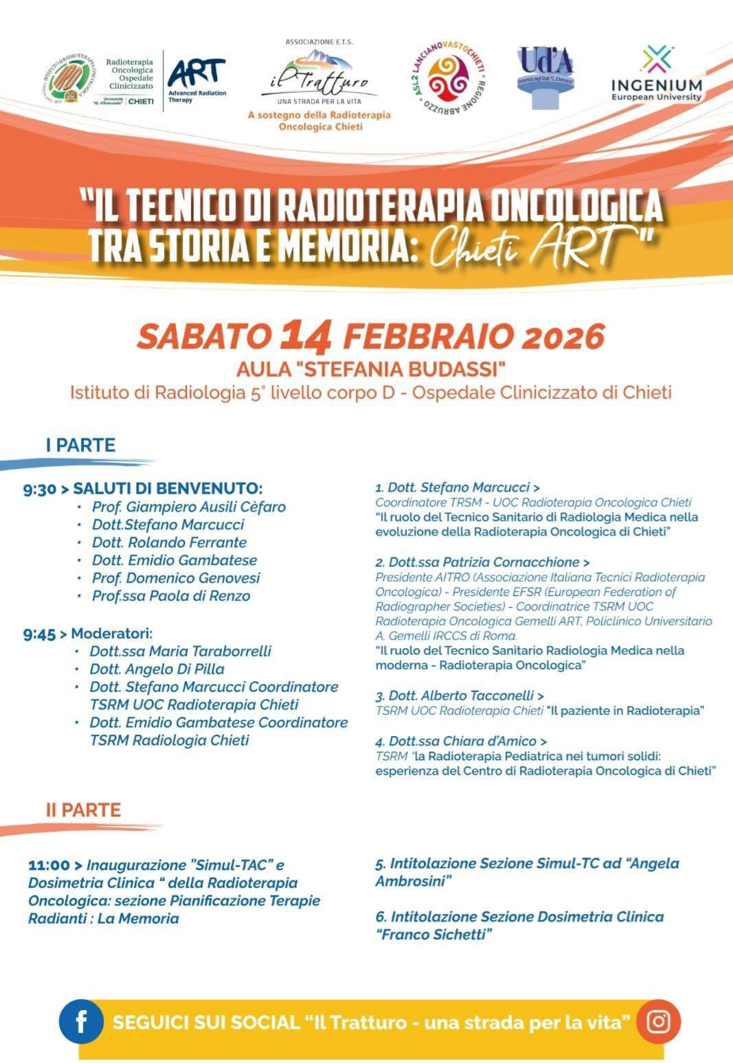 Tecnologia e memoria saranno il filo conduttore dell’evento “Il Tecnico di Radioterapia Oncologica tra Storia e Memoria: Chieti. ART”, in programma alle ore 9.00 nell’aula “Stefania Budassi” dell’Istituto di radiodiagnostica dell’ospedale di Chieti.