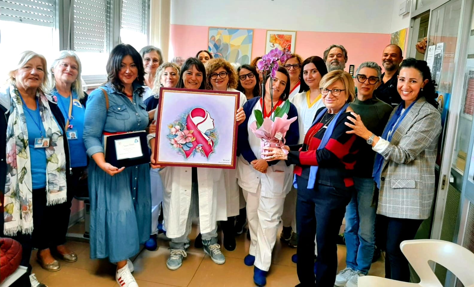 L’artista Simona Milella, originaria di Spoltore, ha donato una sua opera intitolata “Rifiorire”. Il quadro è stato accolto dalla breast unit dell’ospedale di Ortona, centro certificato “breast center Eusoma” della Asl Lanciano Vasto Chieti per la cura del carcinoma della mammella, e dall’Associazione Gaia, che offre sostegno alle donne operate al seno.