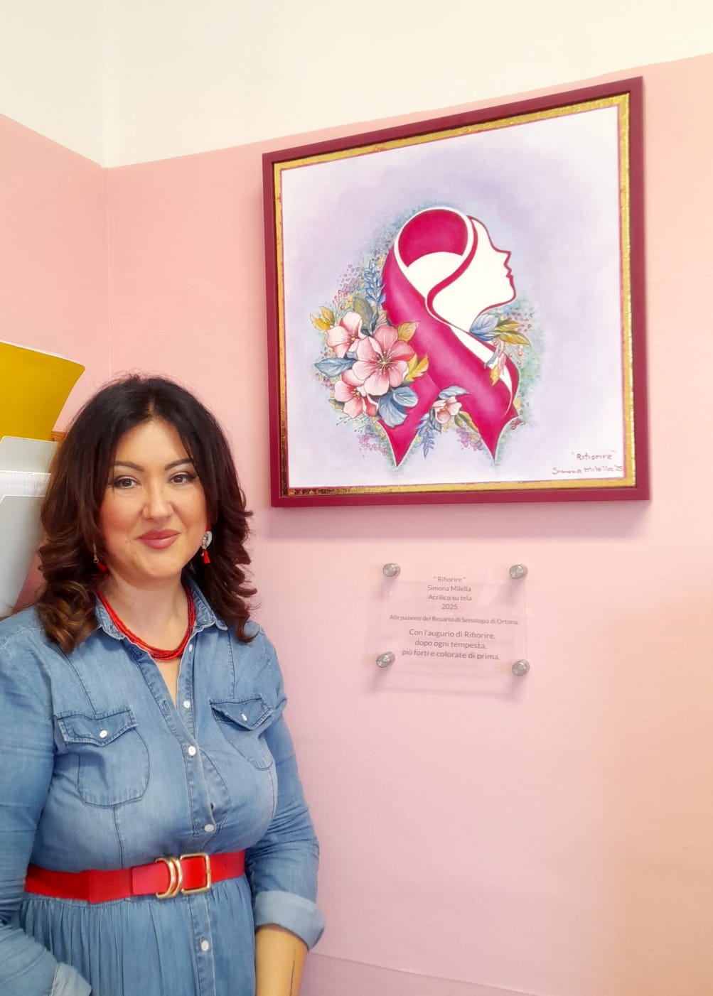 La breast unit ha voluto ringraziare l’artista per il dono ricevuto con una targa: «A Simona Milella. L’arte rende il mondo un luogo di bellezza e di pace. Grazie per aver voluto condividere il tuo mondo con noi».